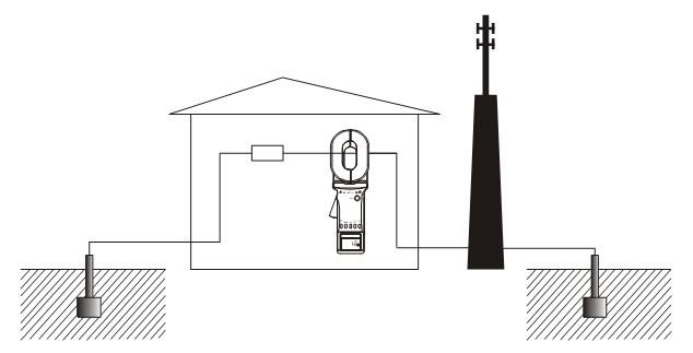 通常輸電線路桿塔接地構(gòu)成多點(diǎn)接地系統(tǒng),只需用拓普牌鉗形接地電阻測(cè)試儀鉗住接地引下線,即可測(cè)出該支路的接地電阻阻值。