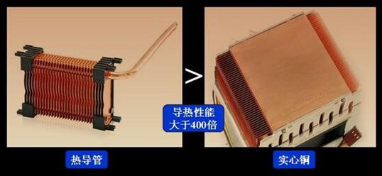 熱管主要是靠工作介質(zhì)相變時吸收和釋放汽化潛熱的循環(huán)來傳遞熱量,由于介質(zhì)的汽化潛熱很大,同時熱阻極低,所以熱管的導(dǎo)熱率極高,通常情況下,導(dǎo)熱能力要比實(shí)心銅高400倍。