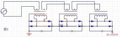 高壓電源最主要的技術(shù)特點(diǎn),就是在于輸出電壓很高。高的輸出電壓對(duì)很多方面提出了特別的要求——元器件耐壓的要求、結(jié)構(gòu)設(shè)計(jì)的要求、絕緣材料的要求等。與此同時(shí),電路結(jié)構(gòu)上也有異于通常的結(jié)構(gòu)。通常對(duì)于輸出10KV以下的電源,可以直接采用傳統(tǒng)的各種拓?fù)浣Y(jié)構(gòu)。但是對(duì)于電壓更高的電源,就要對(duì)電路結(jié)構(gòu)作一些修改,以滿足更高電壓的輸出。由于變壓器初級(jí)部分的功率器件的耐壓限制,一般驅(qū)動(dòng)部分依然是傳統(tǒng)的開(kāi)關(guān)電源拓?fù)?,?duì)電路結(jié)構(gòu)的修改,主要是集中在變壓器以及后面的整流電路上。下面主要對(duì)這兩部分進(jìn)行討論。