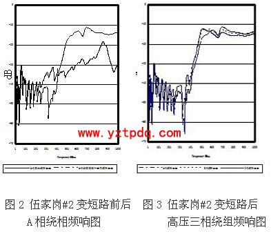 2) 在實際判斷繞組有無變形時,若無原始曲線需要與同廠同型同期變壓器測試結(jié)果相比較時,應(yīng)對高中低三側(cè)繞組區(qū)別對待,高壓側(cè)繞組頻響曲線僅有參考價值。