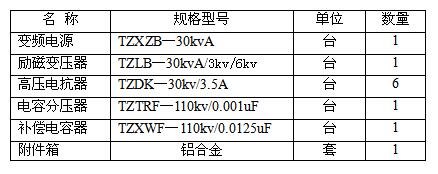 4.1.2.滿足35kV開關、組合電器、電壓互感器及絕緣子的交流耐壓試驗,試驗時間1min,Z高試驗電壓105kv,試驗頻率50Hz以上。Z大等效電容量為0.01uF。