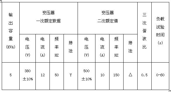 5kVA/360V150Hz感應耐壓試驗裝置是電力系統(tǒng)、發(fā)電廠、變電站、供配電網(wǎng)絡(luò)中對小容量電力變壓器、串級式高壓電壓互感器進行倍頻感應高壓試驗的基本設(shè)備之一。也可對各種低壓電子、儀表電源變壓器,電感線圈、電器線圈進行倍頻倍壓試驗,同時也可作為功率不大于1千瓦的倍頻電源用于某些特殊電器設(shè)備的供電或測試。