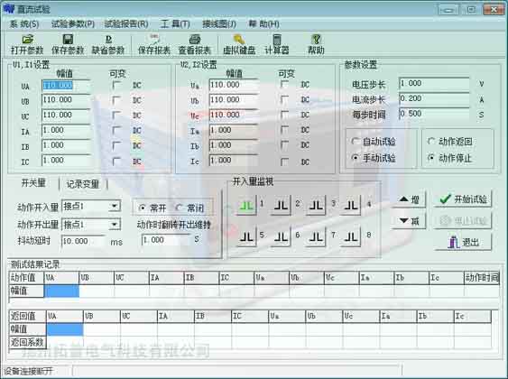 根據(jù)不同類型選擇某相電壓或某相電流為變量,采取手動(dòng)或自動(dòng)的方式進(jìn)行試驗(yàn)即可。本儀器對(duì)中間繼電器有專門的測(cè)試程序,可參考【中間繼電器】模塊介紹。