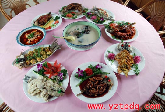 據(jù)說用呼倫湖產(chǎn)的鮮魚和湖蝦,最多可烹制魚菜120多種,一般是12、14、20道魚菜上桌,總名之為“全魚宴”,有鯉魚跳龍門、家常熬鯽魚、梅花鯉魚、油浸鯉魚、松鼠鯉魚、湖水煮魚、魚卷、荷包鯉魚、煎悶白魚等。www.yzmpos.com大概還是魚的品種少了,做來做去無非就是那些魚在翻花樣,就像一場戲,由于演員少,一個人往往要頂三四個角色,很是無趣。不過吃過了,抹抹嘴,你得老老實(shí)實(shí)地承認(rèn):“好吃!是好吃!”