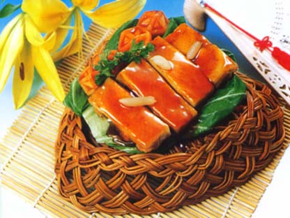 全鴨宴共分四個(gè)系列,即宴、席、會(huì)、展。春有桃花宴,宴中有溢彩誘人的雛鴨迎春、冰清玉潔的芙蓉鴨舌、栩栩如生的西湖鴨群、香脆可口的鴨肉春卷;夏有荷花全鴨席,宴間有消香解熱的荷花白燜鴨、三色鴨雪糕、玲瓏剔透的玉骨穿翅、鹽水香鴨;秋有菊花全鴨會(huì),宴席的銀杏鴨丁、琵琶鴨舌、仙鶴望月、冬有梅花全鴨展,宴有涮全鴨、雪蓋鴨方、油炸鴨串及萬(wàn)紫千紅的鴨血豆腐。