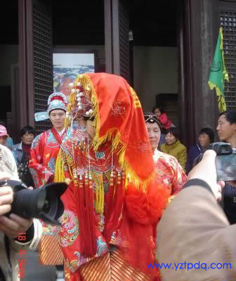 活動(dòng)在東門城樓開始,帶大家體驗(yàn)穿越時(shí)空的喜慶場(chǎng)面。4月18日下午,作者在揚(yáng)州東門城樓,親自體驗(yàn)了下“夢(mèng)回明清,愛在揚(yáng)州”古典婚嫁。