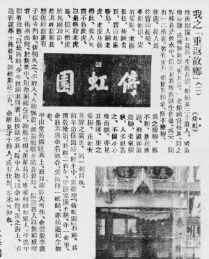 上世紀二十年代,素有“副刊圣手”之稱的老報人張慧劍游揚州,也寫了一篇散文“揚州游記”,收錄于上海世界書局1929年6月出版的《湖山味》,文中提到:“揚州人因為這是蓋了紀念徐寶山的,因人及園,徐園遂也成為一個名勝了。當我踏到徐園的盡頭處,看見墻上嵌有一塊碑石,大書曰:倚虹園。我有一個死掉的朋友畢倚虹,我又有一個常去吃飯的所在倚虹樓,我還有一個最歡喜聽她唱白盔白甲白旗號的歌女倚虹閣;倚虹園三字便合我如同他鄉(xiāng)遇故知一般,毫不客氣地鉆進我記憶里。”