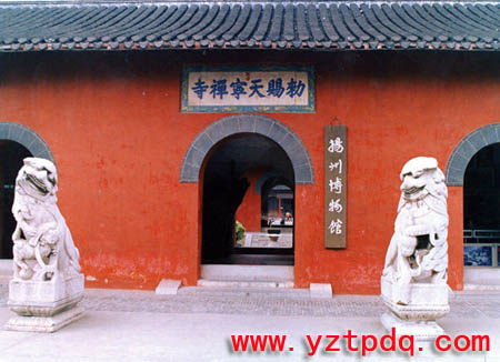 揚(yáng)州天寧寺是清代揚(yáng)州八大名剎之一。但它的歷史到底始于何時(shí),眾說(shuō)紛紜。最早的說(shuō)法,是說(shuō)唐代柳毅舍宅造寺,這個(gè)柳毅就是唐代傳奇《柳毅傳》中的主人公。柳毅是小說(shuō)中的人物,我們也許不必深究。普通的傳說(shuō),是東晉時(shí)謝安捐出別墅建寺,以供尼泊爾僧人佛馱跋陀羅在此翻譯《華嚴(yán)經(jīng)》。但是,對(duì)這一說(shuō)法學(xué)者也有不同的意見(jiàn)。比較可靠的說(shuō)法,應(yīng)該是《寶佑惟揚(yáng)志》所記載的,天寧寺始建于武則天證圣元年(695),以年號(hào)為名,最初稱(chēng)為“證圣寺”。《寶佑惟揚(yáng)志》是宋代編纂的揚(yáng)州志書(shū),與建寺時(shí)間較近,當(dāng)時(shí)寺廟的名聲又很大,當(dāng)不會(huì)有太大出入。北宋真宗大中祥符五年(1012),證圣寺改名“興教院”。宋徽宗政和二年(1112),全國(guó)重要州府均建“天寧寺”,所謂“建寺”也包括將原有的寺廟更名,于是賜予此寺“天寧禪寺”之名,從此沿襲至今。現(xiàn)在全國(guó)很多地方都有天寧寺,來(lái)歷就在于此。