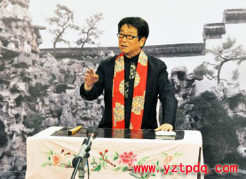 楊明坤一直主張地方曲種一定要保住方言。在他看來,一方水土養(yǎng)育一方人,揚(yáng)州評話藝術(shù)就是為江淮大地上的老百姓服務(wù)的,揚(yáng)州評話必須用揚(yáng)州方言來說,如果離開揚(yáng)州方言,揚(yáng)州評話也一文不值。