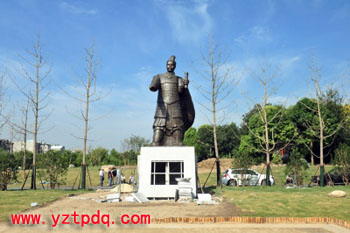據(jù)施工人員介紹,吳王夫差雕塑設(shè)置在廣場(chǎng)東西中軸線的西端,材質(zhì)為青銅,基座高度約2.5m,雕塑高約6m,總體高度約8.8m。據(jù)工程負(fù)責(zé)同志介紹,吳王夫差雕塑今年5月13日確定了中標(biāo)供應(yīng)商,中標(biāo)供應(yīng)商在吸納評(píng)標(biāo)專(zhuān)家和部分揚(yáng)州文史專(zhuān)家的意見(jiàn)后,對(duì)雕塑的造型、服飾、面部神態(tài)等細(xì)節(jié)進(jìn)行了完善。據(jù)悉,這次先行吊裝的為1:1的玻璃鋼雕塑,重約1噸。為什么不直接吊裝青銅雕塑?專(zhuān)家告訴記者,這是想經(jīng)過(guò)一定時(shí)間的現(xiàn)場(chǎng)展示,來(lái)征集市民的意見(jiàn),在征集市民意見(jiàn)截止之日起60天內(nèi),完成最終的青銅雕塑制作和現(xiàn)場(chǎng)安裝。