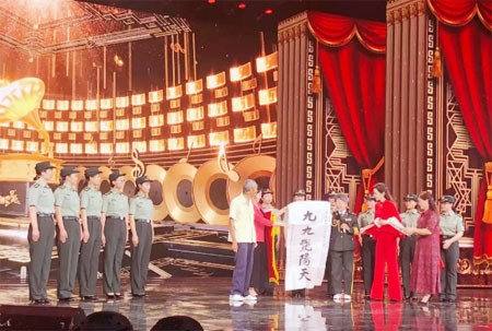 陶玉玲驚喜現(xiàn)身 與官兵代表共唱《九九艷陽(yáng)天》