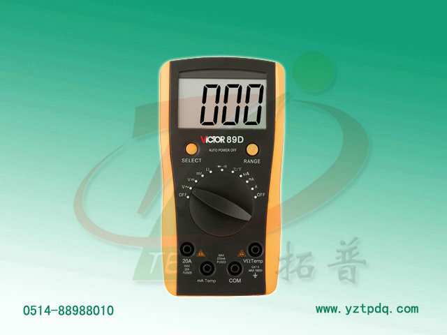 6、自恢復(fù)保險管保護電路設(shè)計。 基本功能 量程. 基本準確度 直流電壓 200mV/2V/20V200V/1000V ±(0.5%+4) 交流電壓 200mV/2V/20V/200V/750V ±(1.0%+6) 直流電流 200uA/2000uA/20mA/200mA / ±(0.8%+6) 交流電流 200uA/2000uA/20mA/200mA / ±(1.0%+6) 電阻 200Ω/2kΩ/20kΩ/200kΩ/2MΩ/20MΩ ±(0.8%+4) 攝氏溫度 (-20-1000)℃ ±(0.8%+4) 華氏溫度 (0-1832) oF ±(0.75%+5) 特殊功能 VICTOR 89D 二極管測試 √ 通斷報警 √ 低電壓顯示 √ 自動關(guān)機 √ 功能保護 √ 自恢復(fù)保險 √ 防震保護 √ 輸入阻抗 10MΩ 采樣頻率 3次/s 交流頻響 (40-400)Hz 操作方式 自動量程 顯示 1999 液晶顯示 65× 電源 9V (