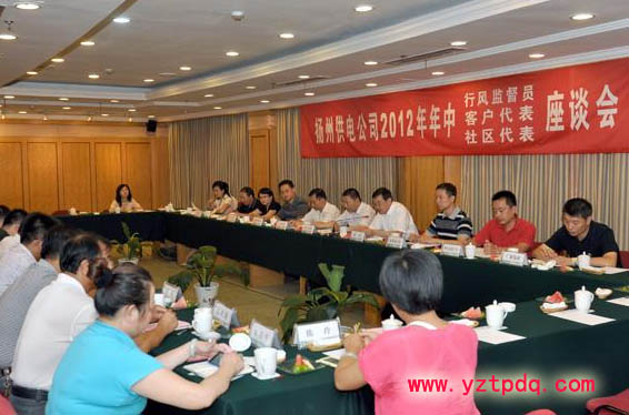 8月16日上午,揚(yáng)州供電公司召開座談會(huì)向社會(huì)各界通報(bào)公司2012年上半年圍繞構(gòu)建和諧企業(yè)、服務(wù)和諧社會(huì)、促進(jìn)全市經(jīng)濟(jì)社會(huì)發(fā)展所做的主要工作,聽取社會(huì)對(duì)供電服務(wù)的意見、建議和訴求。