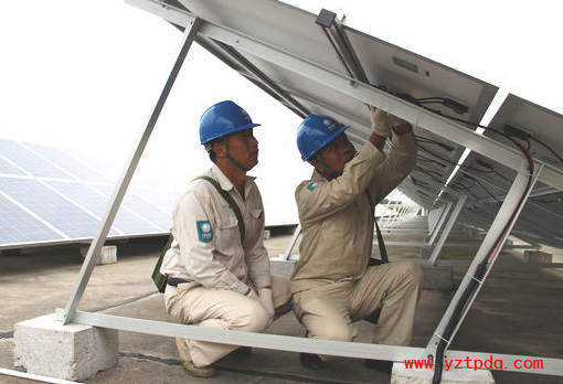 2014年9月16日,國網(wǎng)揚(yáng)州市江都供電公司工作人員深入基層,來到“江蘇光伏賣電第一人”朱啟杰以及其他分布式光伏發(fā)電用戶,為他們解決光伏發(fā)電和并網(wǎng)中遇到的問題,促進(jìn)江都分布式光伏發(fā)電產(chǎn)業(yè)的快速發(fā)展。目前,揚(yáng)州市江都區(qū)有32家分布式光伏發(fā)電用戶申請并網(wǎng),已經(jīng)并網(wǎng)20家,其中企業(yè)為3家,個(gè)人為17家,并網(wǎng)總?cè)萘繛?10千瓦,在江蘇省各縣(市、區(qū))名列前茅。圖為江都供電公司員工為揚(yáng)州永力電子公司120千瓦分布式光伏發(fā)電裝置檢修線路。