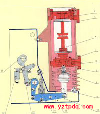 目前真空斷路器毫無(wú)例外地采用對(duì)接式接觸方式。動(dòng)觸頭碰上靜觸頭之后就不能再前進(jìn)了,觸頭接觸壓力是由每極觸頭壓縮彈簧(有時(shí)稱作合閘彈簧)提供的。所謂接觸行程,就是開(kāi)關(guān)觸頭碰觸開(kāi)始,觸頭壓簧施力端繼續(xù)運(yùn)動(dòng)至?xí)[終結(jié)的距離,亦即觸頭彈簧的壓縮距離,故又稱壓縮行程。