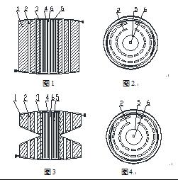 結(jié)構(gòu)骨架3為中空的筒狀,為圓形。線圈1環(huán)繞在結(jié)構(gòu)骨架3的外部,鐵芯5設(shè)置在結(jié)構(gòu)骨架3的內(nèi)部,線圈1內(nèi)置有一個或多個第一冷卻通道2,鐵芯5內(nèi)沒有一個或多個第二冷卻通道6。屏蔽板4分別固定在結(jié)構(gòu)骨架3的兩端部,用于限位鐵芯5,防止其在結(jié)構(gòu)骨架3內(nèi)上下滑動。線圈1的最內(nèi)層為貼合在結(jié)構(gòu)骨架3外表面的線圈層,線圈1的最外層為線圈層;冷卻冷確通道層由多個第一冷卻通道2構(gòu)成,多個第一冷卻通道2沿圓周分布。第一冷卻通道2沿著結(jié)構(gòu)骨架3軸心線方向設(shè)置,即第一冷卻通道2的軸心線和結(jié)構(gòu)骨架3的軸心線之間夾角0度,方便加工制造。所述第二冷卻通道6為兩端開口的中空管狀,第二冷卻通道6沿著鐵心5軸心線方向設(shè)置,即第二冷卻通道6的軸心線和鐵芯5的軸心線之間夾角0度,方便加工制造。第一冷卻通道2、第二冷卻通道6的內(nèi)部分別設(shè)有分布在該冷卻通道內(nèi)的用于增強(qiáng)散熱的柵板,柵板由導(dǎo)熱性能優(yōu)越的不導(dǎo)磁的不銹鋼制成。