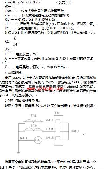 廠礦企業(yè)供配電系統(tǒng)中廣泛使用的電流互感器在安裝使用過程中,要注意選型和二次負荷的計算,滿足保護裝置的可靠性和測量儀表準確性的要求。