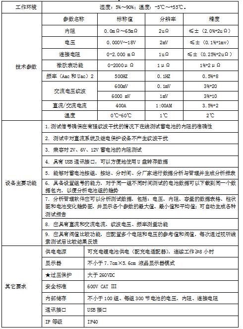蓄電池內(nèi)阻測(cè)試儀規(guī)格及技術(shù)參數(shù)