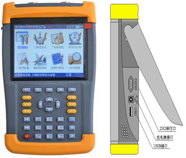 拓普品牌多功能手持式全自動變比測試儀采用大屏幕真彩色液晶屏顯示,全中文圖形化操作界面并配有漢字提示信息、多參量顯示的液晶顯示界面,人機(jī)對話界面友好,向量圖顯示及接線判斷為檢查電路的正確性提供了可靠的依據(jù)。全觸摸式導(dǎo)電硅膠鍵盤操作方式,操作手感好,簡便易學(xué)。儀器內(nèi)置大容量掉電不丟失數(shù)據(jù)存儲器,可將現(xiàn)場校驗(yàn)數(shù)據(jù)保存下來,可擴(kuò)展存儲1000組現(xiàn)場校驗(yàn)結(jié)果。儀器除具有完全根據(jù)用戶的現(xiàn)場使用要求,操作簡便,功能完備,數(shù)據(jù)穩(wěn)定可靠的特點(diǎn)外還是國內(nèi)到目前為止一款可以進(jìn)行盲測(不知道被測變壓器的任何銘牌參數(shù)的情況下準(zhǔn)確測量變比值和組號,同時能準(zhǔn)確測量相角)的手持式變比測試儀;能適應(yīng)各種大中小型變壓器變比測試的需要(包括Z型變、整流變、電爐變、非整點(diǎn)的移相變、牽引變、斯科特及逆斯科特變壓器),是到目前為止國內(nèi)變比測試中技術(shù)先進(jìn),測試項(xiàng)目完善,測量參數(shù)較全面的變比測試儀。