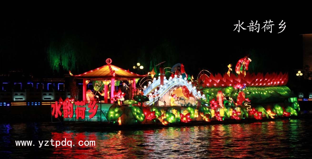 “水韻荷鄉(xiāng)”號(hào)花船由揚(yáng)州拓普電氣科技有限公司所在地寶應(yīng)縣承制的。寶應(yīng)歷史悠久、人杰地靈,素有“寶地”美譽(yù)。整個(gè)花船以“生態(tài)、綠色”為主題,展現(xiàn)了“萬(wàn)頃荷花別樣紅,捧出綠色也醉人,水鮮美食遠(yuǎn)名揚(yáng)”的寶應(yīng)生態(tài)畫(huà)廊情景,更寓意著古寶應(yīng)的靈氣,水寶應(yīng)的秀氣,洋寶應(yīng)的大氣。