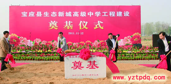 寶應縣委、縣政府11月12日上午隆重舉行生態(tài)新城高級中學工程建設奠基儀式,寶應縣領導仲生、王庭國、秦有芳、侯承海、朱宋華、楊善慧,楊洪國、楊步云等出席并為工程奠基培土。
