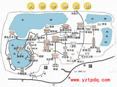 揚(yáng)州大明寺,因初建于南朝劉宋孝武帝大明年間(457—464年)而得名。唐天寶元年(742年),名僧鑒真東渡日本前,即在此傳經(jīng)授戒,該寺因此名聞天下。