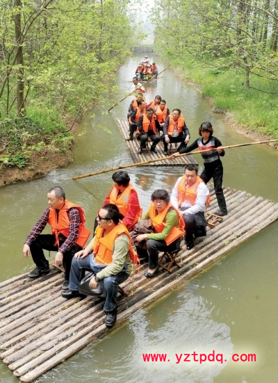 四只木筏,載著采風(fēng)團(tuán)一行在蜿蜒的河道中緩緩穿行,導(dǎo)游的介紹,使大家的思緒回到那個(gè)特定的年代:“這片樹(shù)林也稱(chēng)‘知青林’,40多年了,一行行、一列列水杉枝繁葉茂,30000多棵水杉,講述著歷史、美化著環(huán)境。”