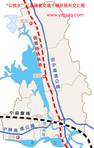 京滬高速與滬陜高速,寧啟鐵路和規(guī)劃中的連淮揚鎮(zhèn)鐵路,長江水道和京杭運河均在揚州交會。在全國交通大局中,公、鐵、水重要干線在揚州縱橫相交。這讓揚州具備了成為國家交通樞紐城市的優(yōu)勢。