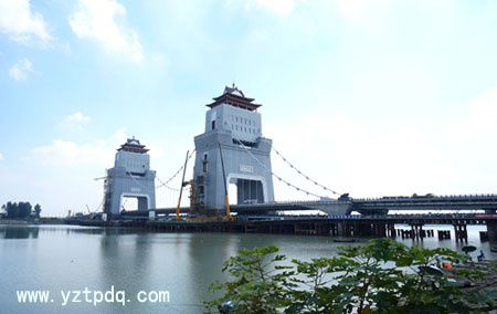 萬(wàn)福大橋橫跨淮河入江水道主河道廖家溝,全長(zhǎng)664米,主跨188米,是我國(guó)首座塔梁古建相結(jié)合景觀橋,也是揚(yáng)州城市地標(biāo)性建筑。主橋?yàn)殡p塔自錨式懸索橋,橋型融現(xiàn)代美與古典美于一體,總體風(fēng)格為亭臺(tái)樓閣,設(shè)計(jì)獨(dú)特新穎,造型古樸典雅,與揚(yáng)州城市歷史悠久、文化燦爛的厚重氣質(zhì)相得益彰。萬(wàn)福大橋是我市一座觀光平臺(tái)。登上塔樓俯瞰,南面的長(zhǎng)江和夾江,北面的邵伯湖和高郵湖,壯闊的江淮生態(tài)大走廊一覽無(wú)余;江都老城和揚(yáng)州古城,廣陵新城和生態(tài)科技新城也都盡收眼底。如果天氣晴朗,長(zhǎng)江對(duì)面的鎮(zhèn)江市的高山也可以看到。