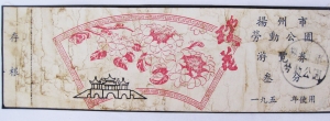 在所有門票中,記者還看到了早期的優(yōu)惠券,兩張“兒童優(yōu)惠門票”票價(jià)分別為肆元和捌元,而“揚(yáng)州市區(qū)居民優(yōu)惠門票”票價(jià)為陸元。